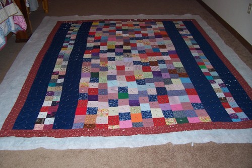 He never did use this quilt, not because it wasn't perfect but because he didn't want it to become worn, and possibly because he preferred the comfort of the first quilt that he had used for so many years. He kept his first quilt through several moves until it was accidentally left in the attic during a recent move and damaged beyond repair.