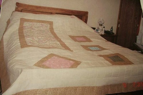 My friend brought out a bed-size quilt that her mother had made. Her family was Mennonite (akin to the Amish), but this was the only quilt her mother had made. And her mother died early, when my friend was a little girl, of pancreatic cancer. This was the only thing she had left from her mother, as her father had re-married and everything else had been disposed of. I examined the quilt carefully, and this is what I found: