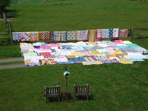 I have been a nurse for 30 years, most of them in pediatrics at Johns Hopkins Hospital. I currently work in the Pediatric operating room and a year ago I was offered a wonderful opportunity to go on a medical mission to Peru. A team of pediatric plastic surgeons, anesthesiologists, nurses, and physician assistants (each paying our own travel expenses)traveled over 10,000 feet up into the Andes Mountains to the small town of Andahuaylas. We spent a week in a tiny hospital repairing cleft lips and palates as well as burn scars. The contracted scars from burns can be very disabling as well as disfiguring. Imagine not being able to close your eye or mouth or bend your fingers! And the stigma attached by some cultures to visible defects such as cleft lips can be devastating. In addition to medical care, we took as many donated items as we were allowed to take on the plane. Because our medical supplies and instruments took up the bulk of our allowed weight, each person was only allowed a carry on for 10 days worth of clothes and personal items! HOWEVER, through much wheedling and persistence, I was able to talk my way into being able to take 4 duffle bags of quilts!! With the magic of Space bags, I squished over 80 quilts into my duffles!! I received donations of quilts from my guild, The Flying Geese in Harford County MD, as well as from my online group, The Blockswappers (we met each other through the TQS forum!). Although I took a bit of teasing for my persistence in wanting to take the quilts (I believe I was referred to as the 'Blanket Nazi'), they were such a hit that everyone enjoyed giving them away. The patients and their families couldn't believe they got to keep them! We made sure that all of the children on the pediatric floor and the babies in the nursery got a quilt. The mission was a wonderful experience that I hope to be able to repeat, there is talk of another in the early planning stages. I'd better start sewing! What a great stash buster!!