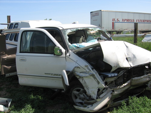The trip to Colorado was without event. The weather was great, traffic wasn’t a problem, and he had the vehicle on cruise control (75 MPH), and was making great time. Sixty miles outside of LaVeta, Don was distracted by the scenery (it is quite breathtaking to see the mountains set so starkly against the open prairie) when suddenly he noticed a truck in front of him pulling a flatbed trailer traveling at a much slower speed. Reality check (or should I say “brake check”)!