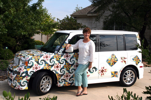 It did turn out to be a “Pimp my Ride” kind of cultural event . All the little Scion XBs and Tc's done up so elaborately with dragons and flames and such. Those little Boxy XB’s really caught my eye. The owners while they had the typical look you might expect with piercings and tattoos aplenty, were so proud to show off their “Rides” It seems that our Creator God gave all who are involved in a creative endeavor, one thing in common. We like to share the joy of our heart in our creation. That was when the seed was planted. How could I, a quilter, “Pimp my ride” to reflect who I am.