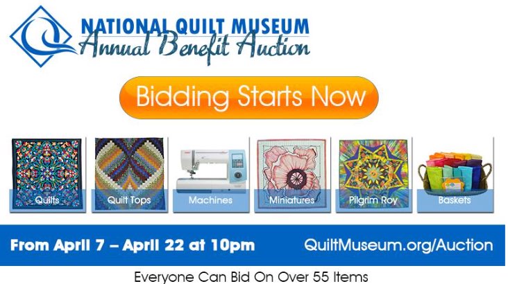 Here's your chance to own a quilt by one of your favorite artists, including Sue Nickels, Pat Holly, and Therese May, just to name a few. All proceeds from the auction benefit the National Quilt Museum's General Fund.