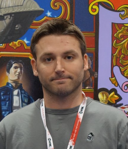 We came across this oil painting at Comic-Con and we were amazed at the colors and design detail in the painting. It is called The 20th Century Space Opera and was created by Robert Xavier Burden. It is an oil on canvas and measures 180" x 96."