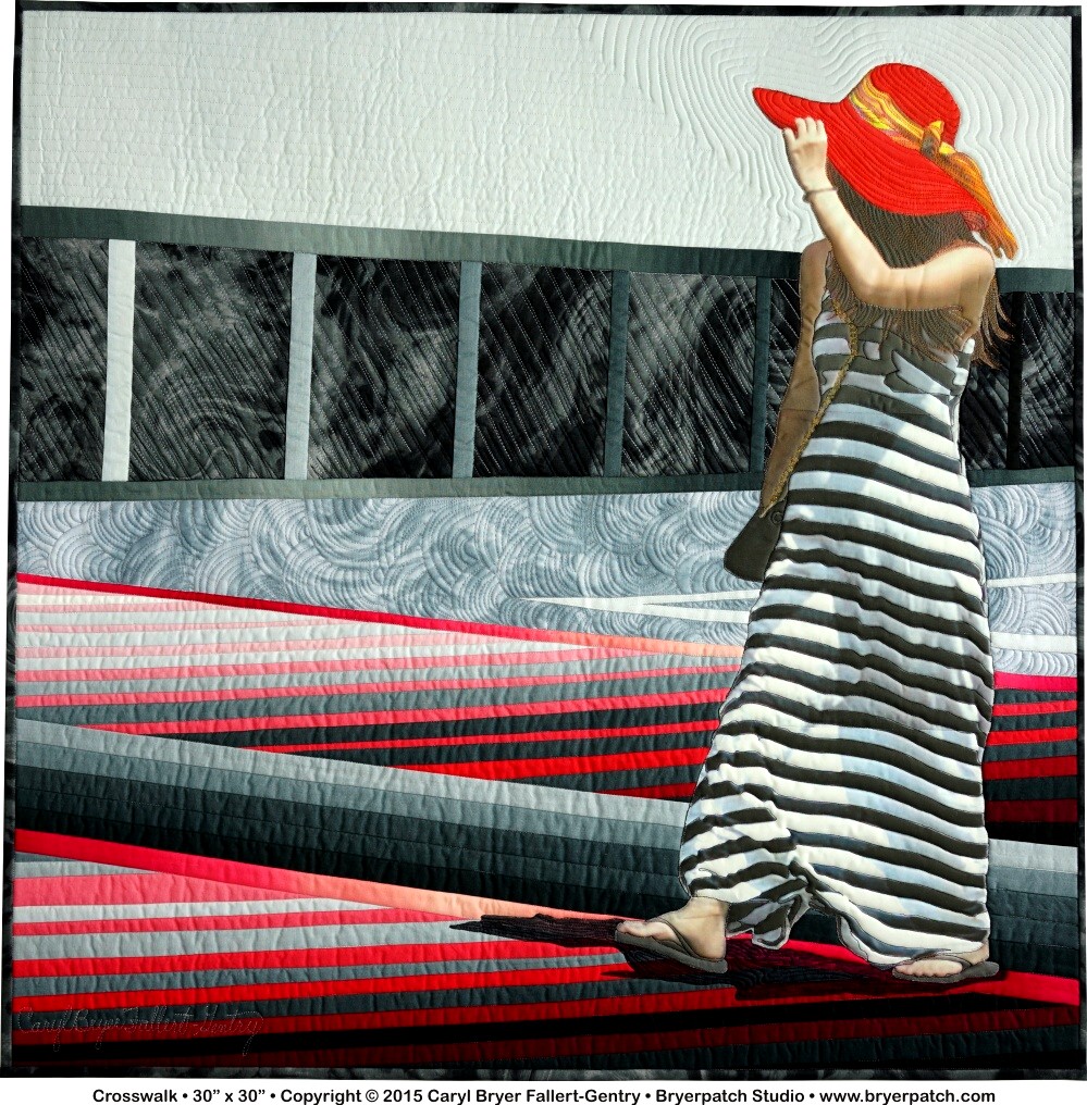 Here's Caryl's latest work, "Crosswalk."  Click here to learn how her photograph of a young lady crossing the street in Bali was transformed into this amazing quilt.