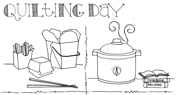 You've been quilting all day and you know you are going to want dinner. What do you do? Put it all in the slow cooker and smell the lovely aroma as you settle in to sew? Do you have a list of take-out numbers taped to the side of your machine? OR do you leave it to the rest of the family? They have to eat too...