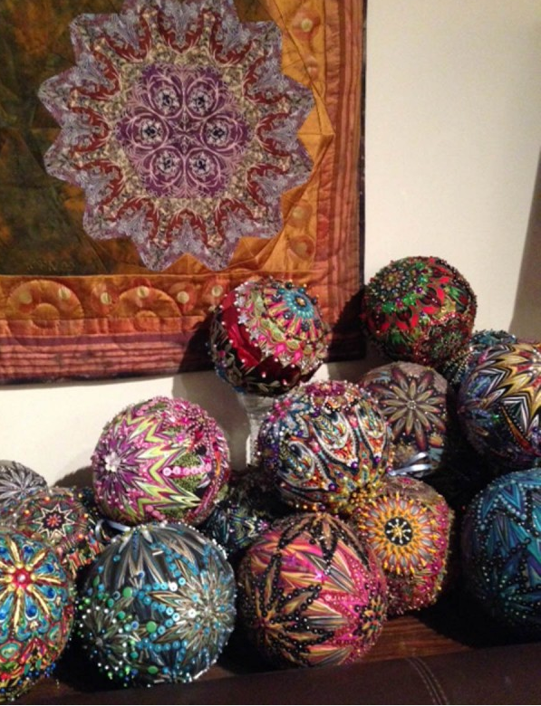 Looking for a way to add a bit of glitz to you surroundings for the holidays? Paula Nadelstern's (Shows 307 & 508) love of pattern and color translates beautifully to a stunning ornament that you just might want to keep out all year. Using fabric (in this case from Benartex), pins, sequins and a few other items, you to can create one of these luscious ornaments. Arranged on a tree, together in a bowl or on a stand all their own, these creations are a wonder to behold. WeAllSew shares more images and has an easy-to-follow tutorial. Now let your imagination run wild!