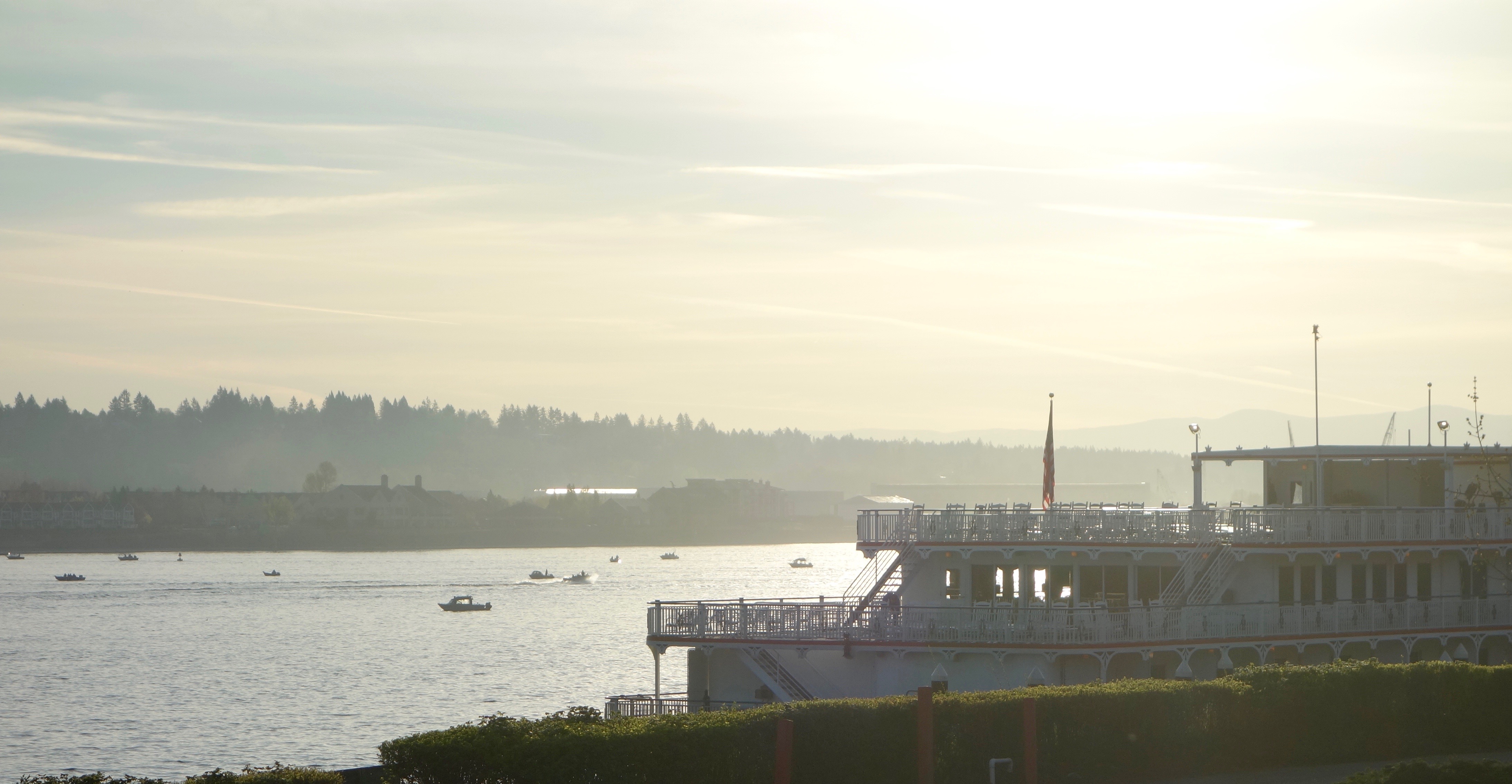 The weather in Portland is fantastic and Alex really loves to see boats.