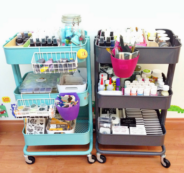 2. Happy Scrappy uses two rolling craft carts to store her essentials.