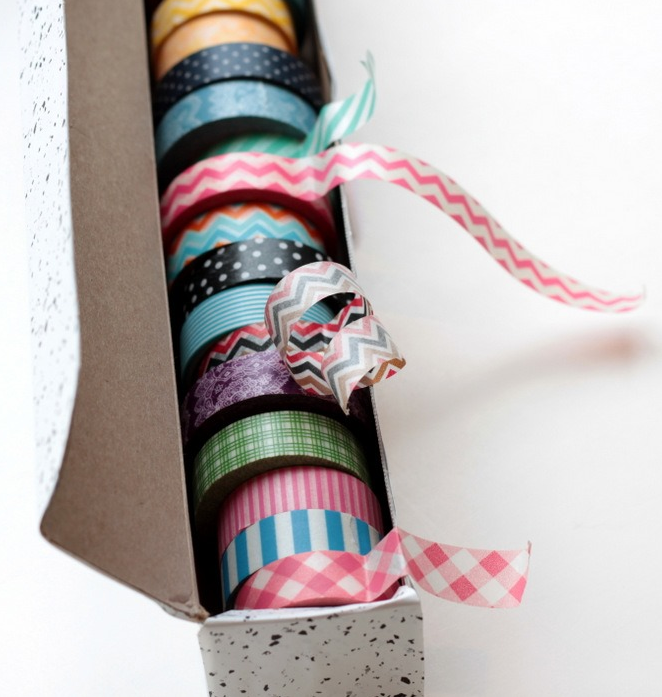 1. Upcycle a waxed paper box to hold your washi tape collection (Homework).