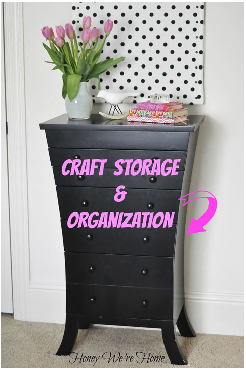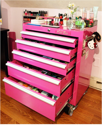 4. A pink rolling tool cart from the hardware store offers lots of drawers to hold all of your sticky items in one place.