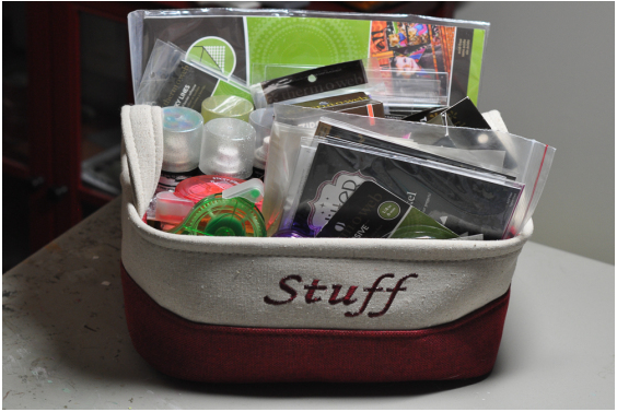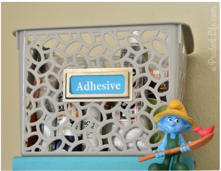 1. Katrina from 3 Birds Design keeps all of her glues and adhesives in a basket for easy access.