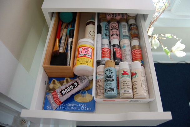 3. Turtles and Tails uses an old shoe cabinet to store her adhesives.