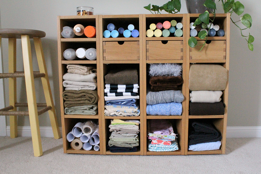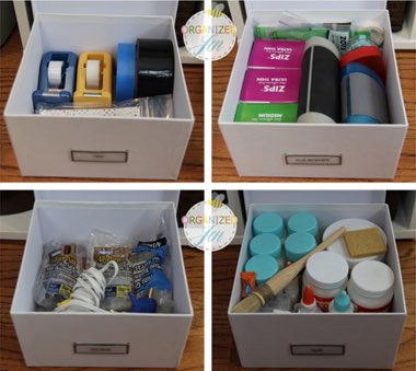 3. Jen at Pretty Neat Living uses labeled Stockholm Photo boxes to hold items in her studio.