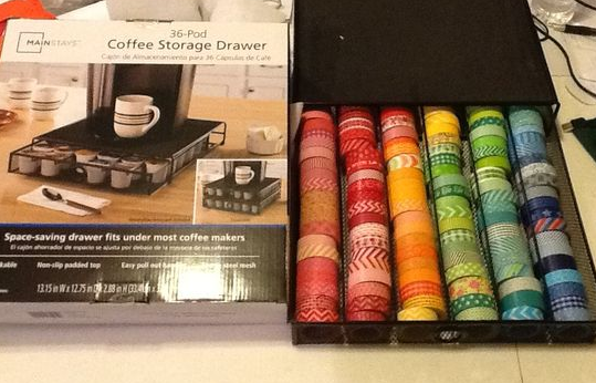 2. Coffee pod storage drawer can hold over 100 washi tape rolls.