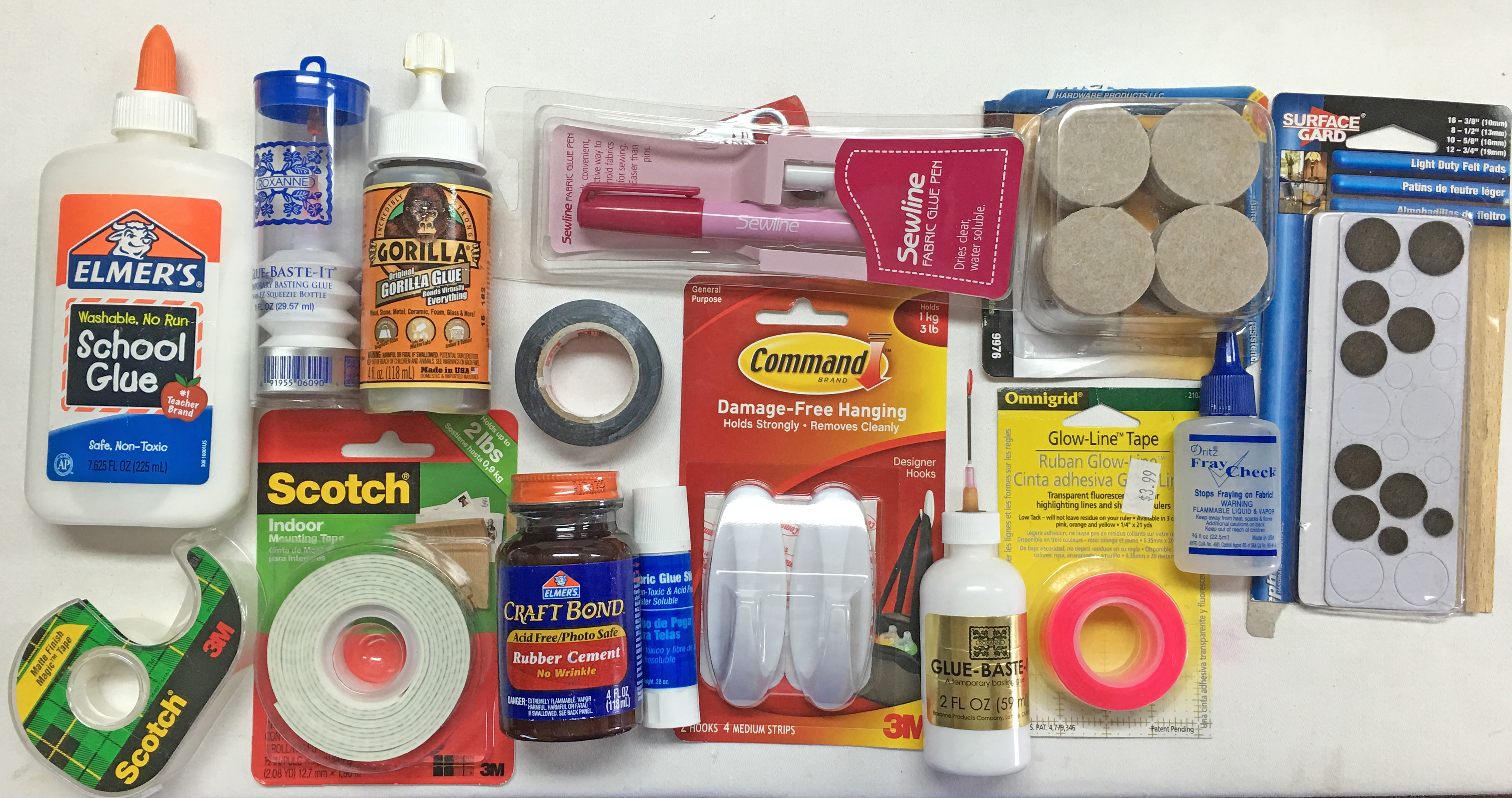This week's workout is to go through your collection of glues, tapes, glue sticks, spray adhesives and other small sticky items. These essential items come in a diverse and wide variety, so they tend to get stuffed in drawers, on shelves, in baskets and other random places. Their odd shapes and sizes can also make storage challenging. But, we have found a number of options that just might work for you and your space. We are not including fusibles and stabilizers as that is your homework for another week, so don't dive into those items just yet.