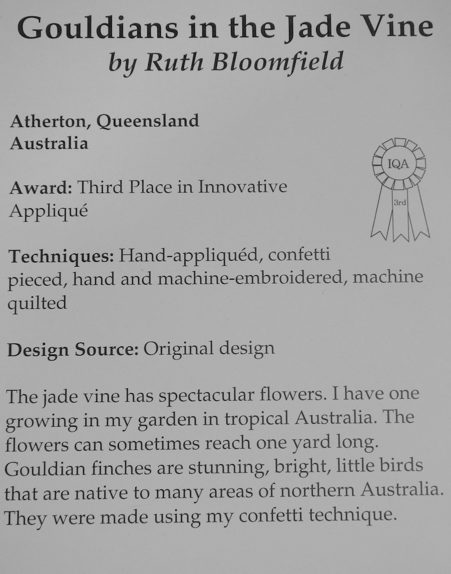 Gorgeous quilt that captures our Aussie plants/birds. Ruth it was a pleasure to meet you and also learn from you when you visited Karratha (Western Australia) a few years ago. I love your work.