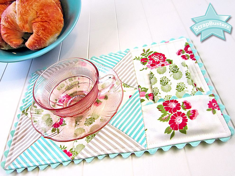 8. Quilted Mug Rug with pocket. Sew4home