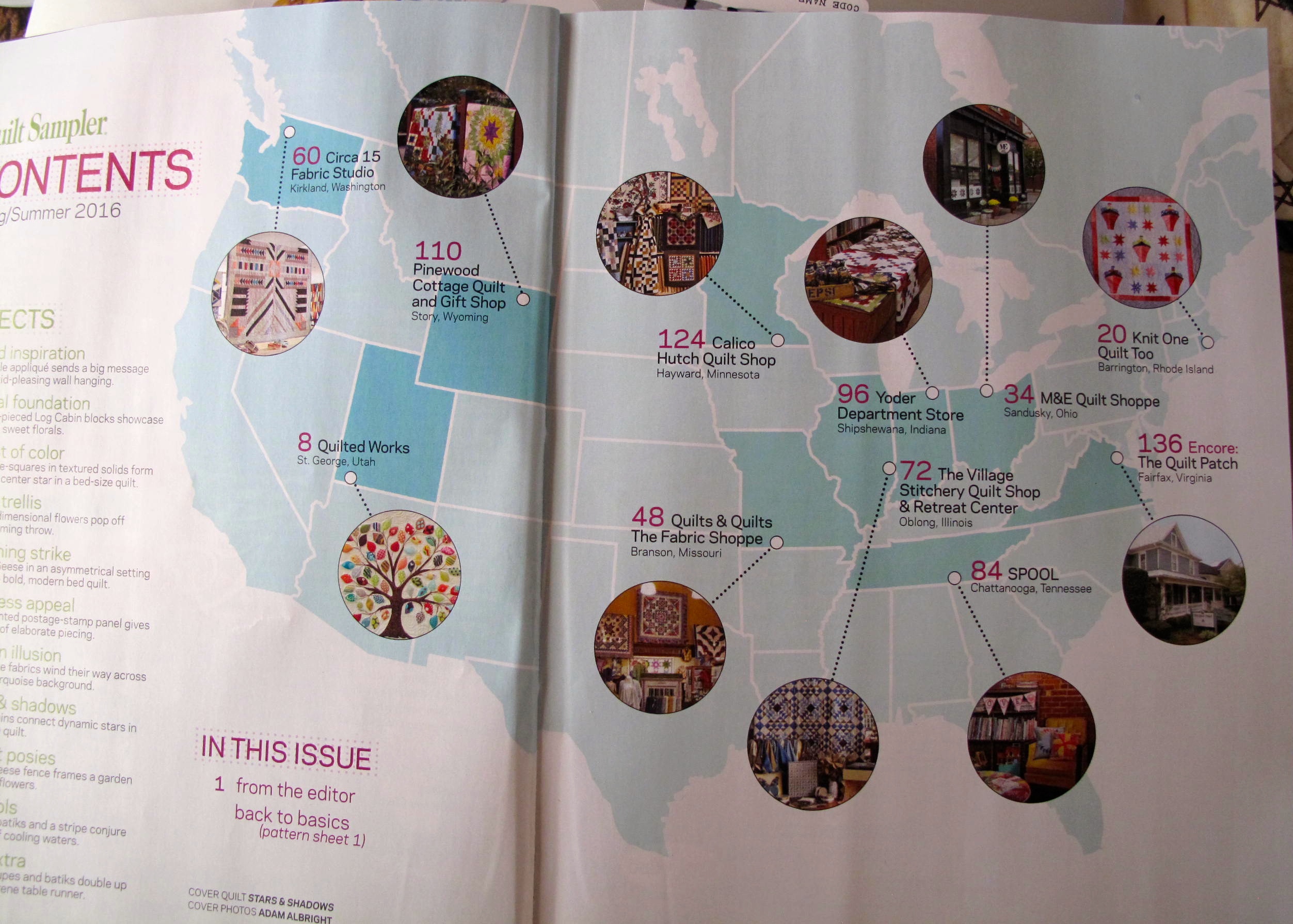 During our road trip I felt like quilters were keeping us on track either through www.wooliemammoth.blogspot.com or our YouTube channel, Quilt Roadies. One of our readers told us that Quilted Works, in St. George, Utah, made one of Top 10 Shops in the nation and was featured in the Spring/Summer 2016 Quilt Sampler magazine!!! I had to go and check them out!