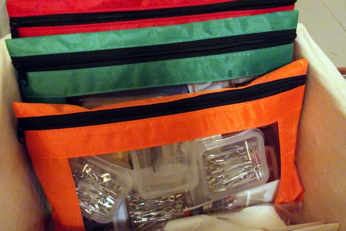 In my tin, I also have recycled and re-labeled an old prescription bottle for containing dull or damaged pins, sewing machine needles and hand sewing needles. When it's full, I go to the pharmacy, and empty it into their Sharps container.