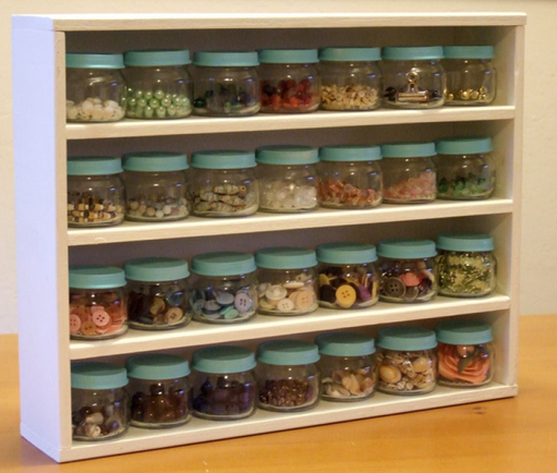 3. IntoTheKingsGarden shares a unified painted collection of baby food jars in a little shelving unit.