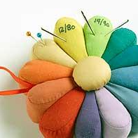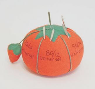 1. Use a traditional Tomato or Dresden Plate Pin cushion. Label the sections by needle type. Fons and Porter