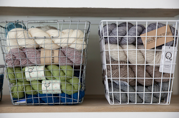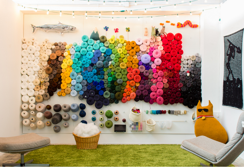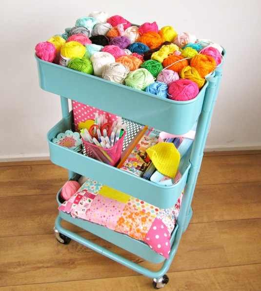 “Whether you go with plastic tubs, baskets, or a bookshelf with cubbies I recommend keeping your yarn stash organized by color palette. Not only is easier on the eye if you keep your supplies out in the open, but it also helps preparation for upcoming projects. The less hunting and gathering work you have to do when inspiration hits, the quicker you’ll be doing that thing you love: knitting, crocheting or crafting!”
