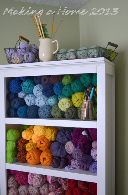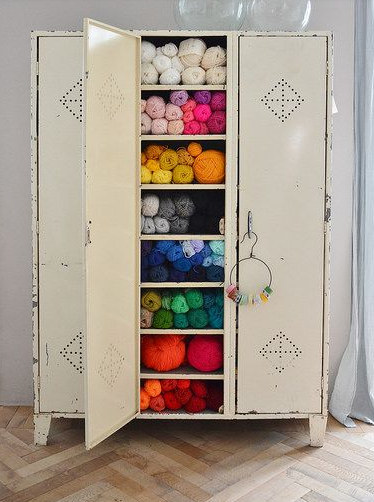 Whether your stash is large or small, the idea is to think creatively when storing yarn in a small space. Don’t just consider out-of-sight spots. Think of ways to make the yarn storage part of your home décor.