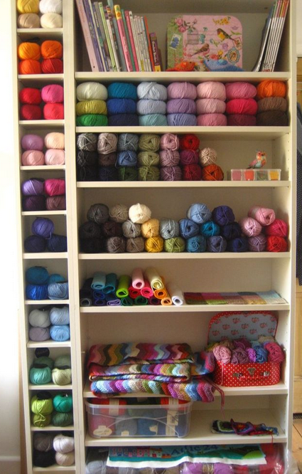 - In the closet … doesn’t sound novel but if you dedicate one single closet to all of your yarn storage and organize it properly it can be the best space.