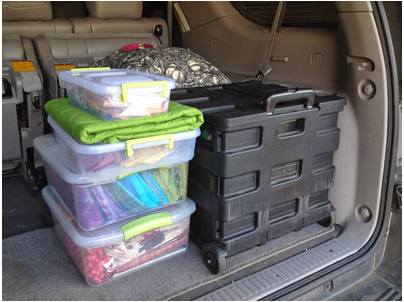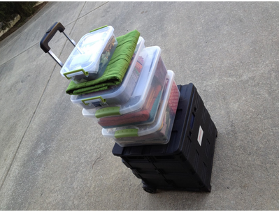 Raise your hand if this scenario sounds familiar? You are signed up for a quilt class or workshop this weekend, and need to bring a fairly wide range of items. It's the night before and you are madly trying to stuff the car with baskets of fabric, bags of batting and thread, a sewing machine, cutting mats, and other class supply items. Five or six trips later, you are exhausted, knowing that this same scene will be played out on the other end when you get to class.