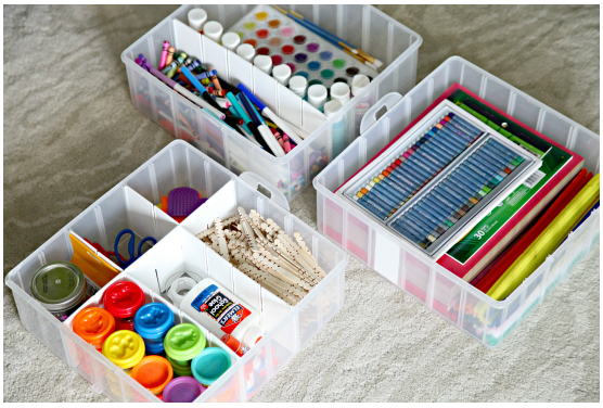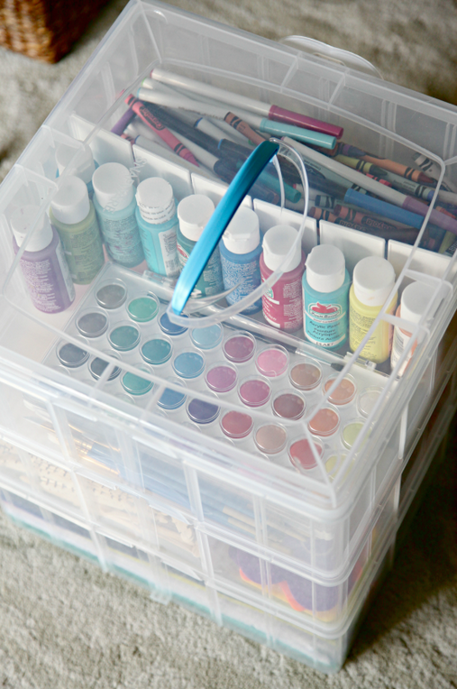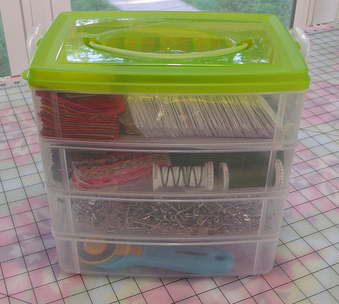 - Utilize stacking, nesting or drawer style portable storage systems that contain everything in one unit. The Minneapolis Modern Quilt Guild showed how you can get an entire project in one multi-drawer Snapware system.
