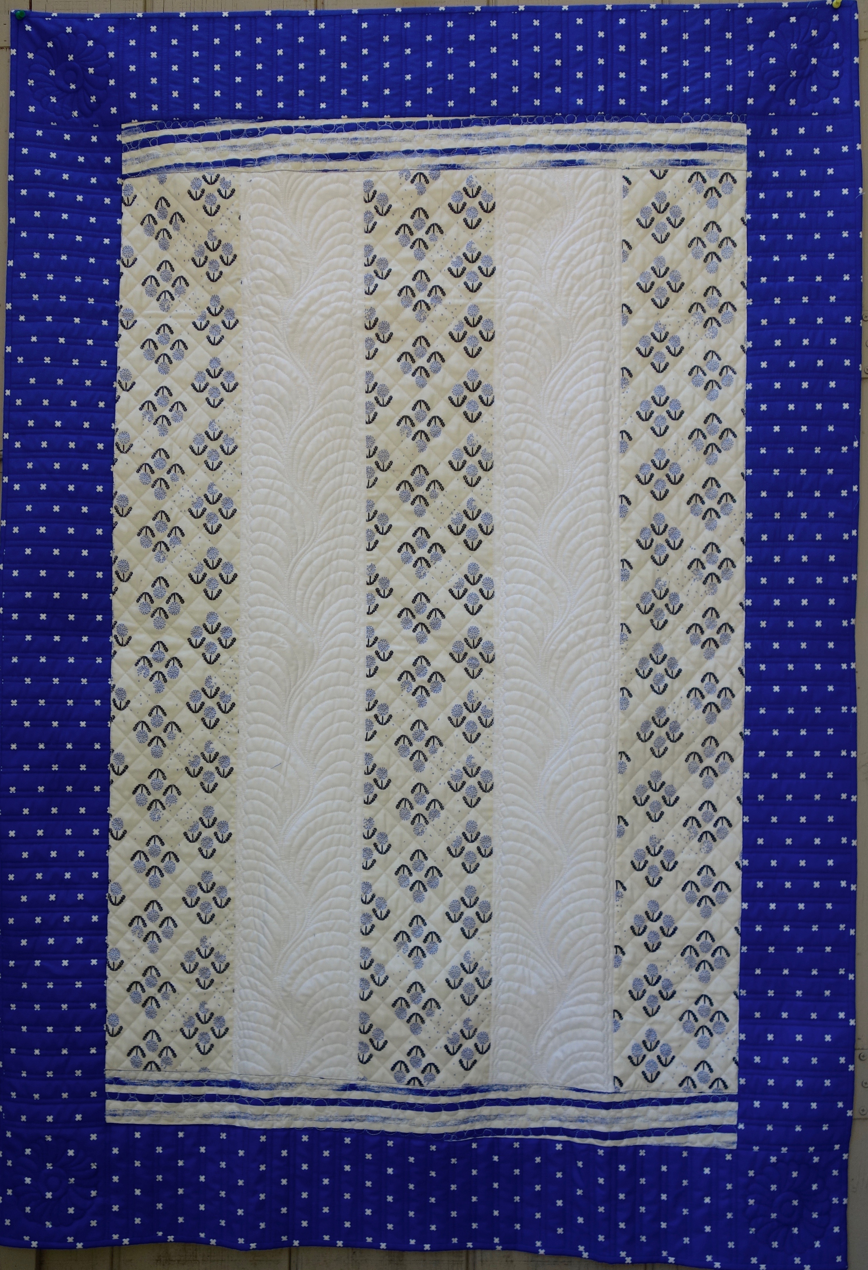 The Quicky Strippy quilt requires minimum piecing and can be completed in an afternoon, but look at the space for amazing quilting. Use this for picnics, couch comfort, or teaching a newbie.