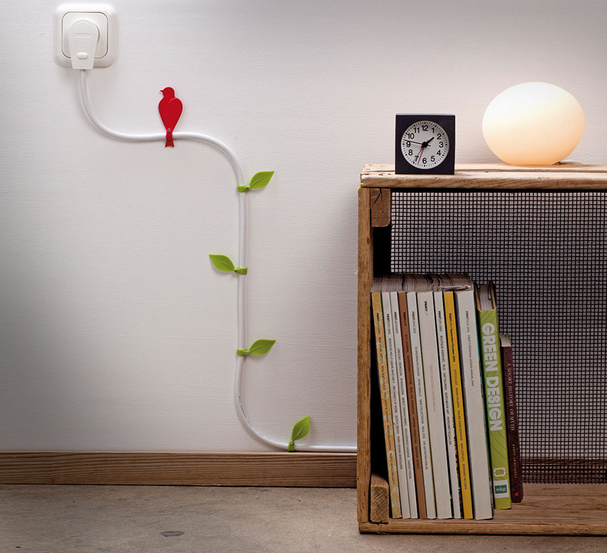 2. Embrace the cord and make it part of your decor style with leaf stickers. Clippings