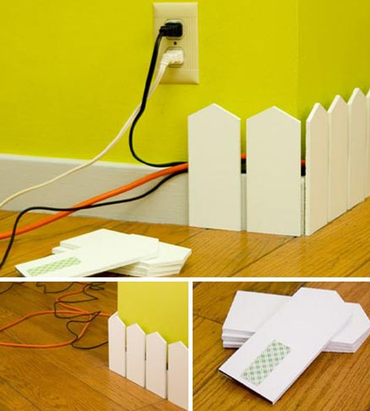 4. Build a cord hiding picket fence using foam core and double sided tape. Pinterest