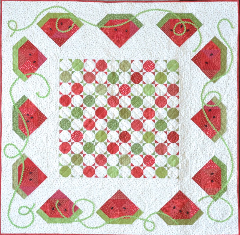 "Summer Slices" is a fun, refreshing quilt from Jill Finley. The pattern is available on her website. It's perfect for a picnic table topper or wallhanging. Whip this quilt up in a weekend to enjoy with family and friends!