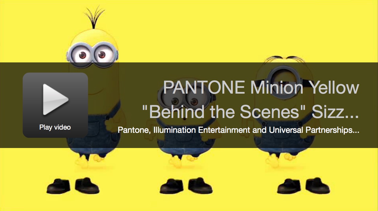 "Inspired by the Minions themselves, the team at the Pantone Color Institute worked closely with the animation team at Illumination Entertainment to identify the exact right yellow shade that could best express what the Minions are all about. Pantone Minion Yellow is a custom color uniquely designed to represent these sweet and subversive characters. Illuminating, energetic, friendly and fun-loving, it is an extroverted, playful and warm yellow shade that sparkles with vitality. Its vibrancy captures the spirit of the Minions and conveys the true essence of these highly original characters." - Laurie Pressman, VP of the Pantone Color Institute