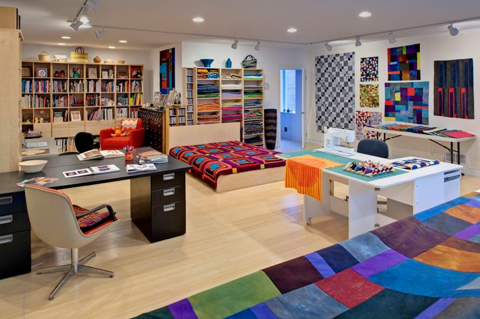 If your creative space does not include wonderful natural lighting, there are a wide variety of ways to achieve optimum light. Before we show you what we have found, let's determine what you actually need in a creative quilting space when it comes to lighting. Professional organizer Lois Haddock suggests that: