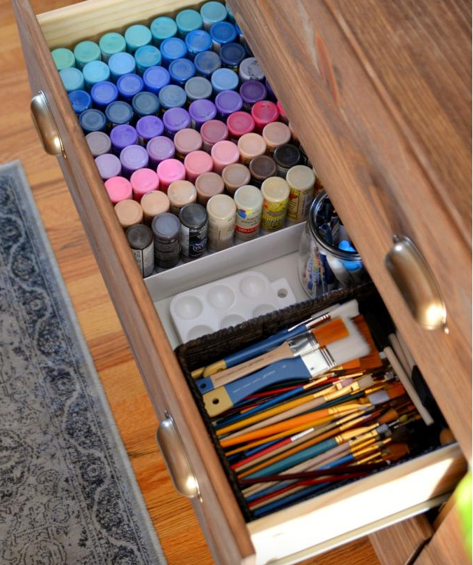3. I also have a weakness for dishes, and currently use a large Mexican wardrobe (with shelves) in my living room for my collections. There is no space in the kitchen of my current house, so to most visitors the wardrobe is just another decorative piece of furniture in the living room. No one ever has to know that YOUR organized craft supplies are hidden in plain sight in another part of your home. Stephanie