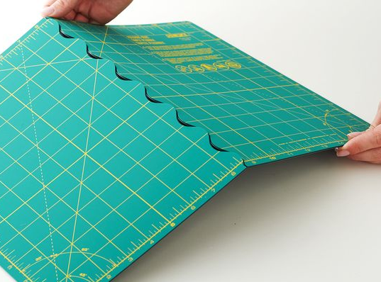 5. When carrying a relatively large cutting mat to class, there is always the worry that it might become bent. This folding option means that a fairly sizeable cutting mat would easily fit into my quilt class tote bag. Olfa