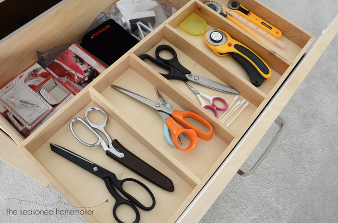 5. MK actually has a drawer she could do this with; she needs to go shopping and get the utensil drawer system like Martha Stewart has to keep these items out of sight. The SeasonedHomemaker also uses this system in her studio.