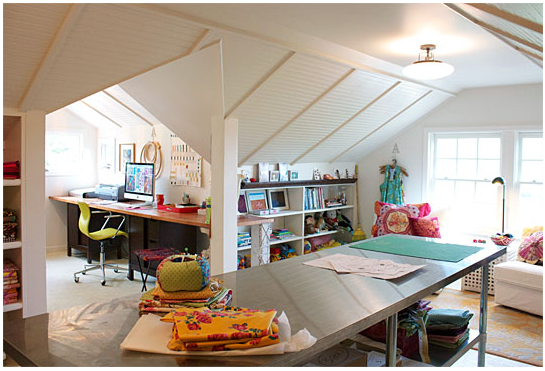 Is the attic space not high enough? Bump up the roof like Anna Maria Horner did in her creative space. Clothpaperscissors