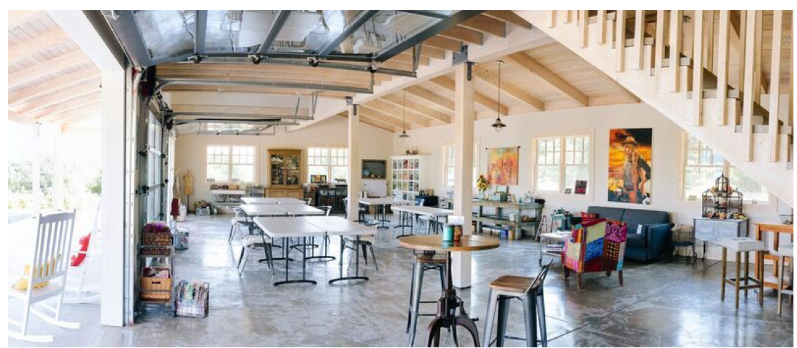A large, open quilting studio that allows for uninterrupted flow of space. Springboard