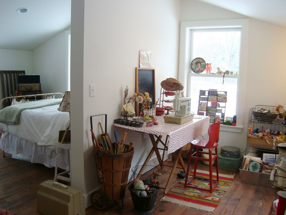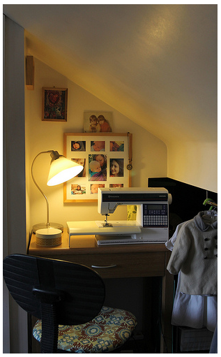 Sewing space under the eaves in a master bedroom. LazySeamstress