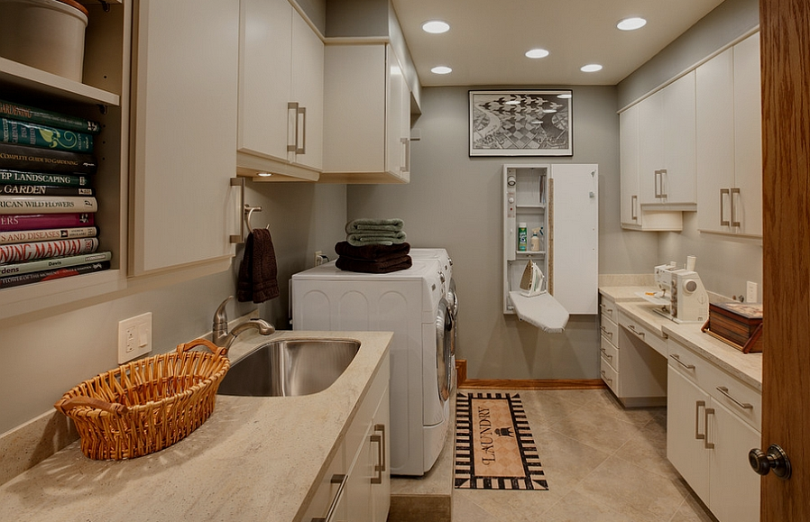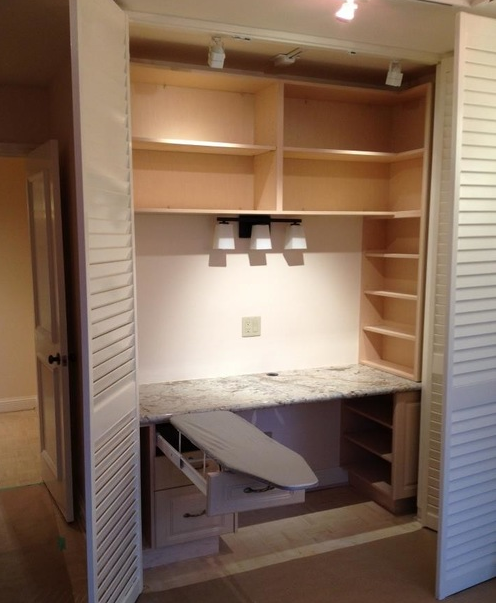 shelving, a sewing table, and pull out ironing surface. Houzz
