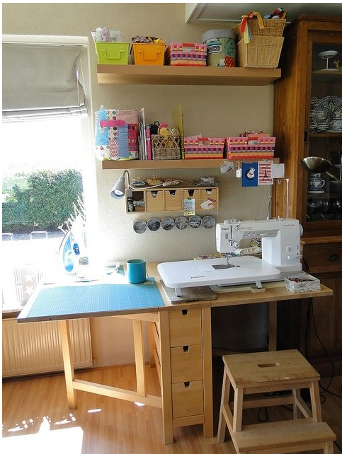 - Look around your home, can you squeeze in a desk somewhere, an alcove in the dining room or your bedroom? Or even a cupboard? I've seen photos of sewing spaces fitted into old pantries and even large wardrobes, that way everything shuts away when not in use. I have used furniture designed for housing home office equipment very successfully in the past.