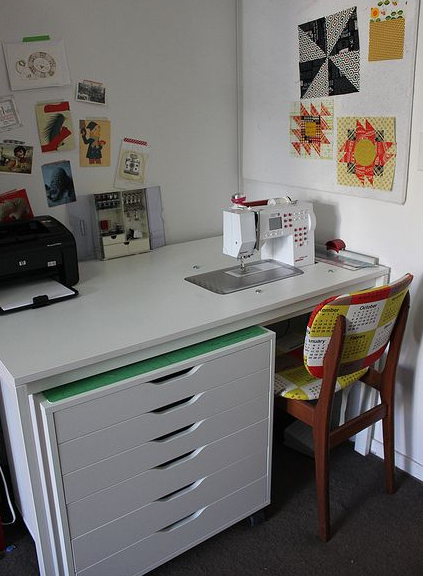 Build your own for a customized and dedicated sewing table that includes storage. Keepsake