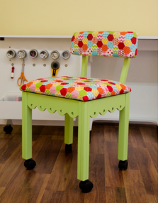 Olivia sewing table and matching chair on wheels in Olive. Joann