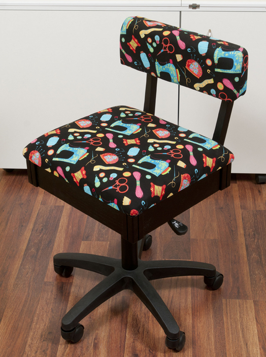 The Arrow Hydraulic Chair even includes a liftable seat cushion to reveal a hidden storage compartment for your small notions or patterns.