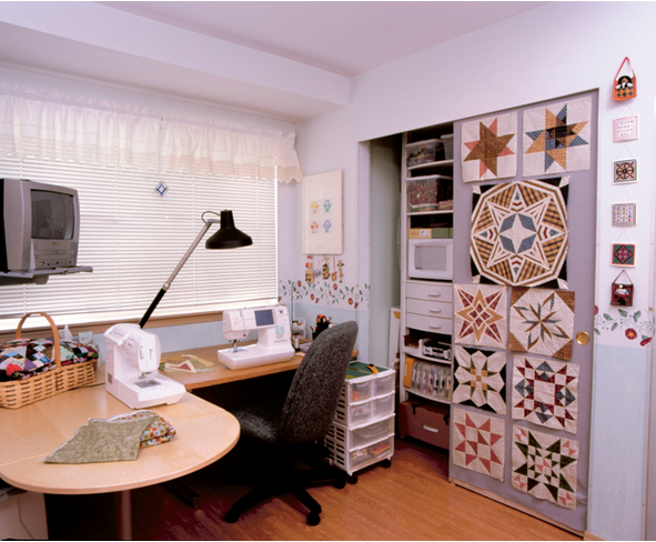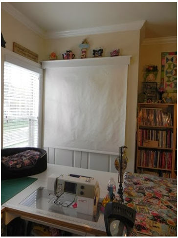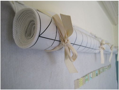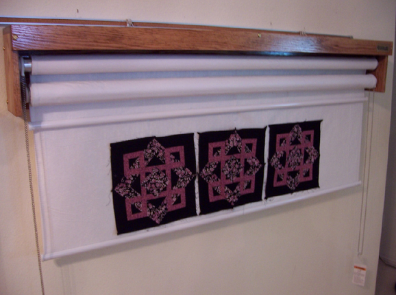 Hang a piece of flannel or batting using clips on a drapery rod. When not in use, hang a finished small quilt. Craftsy