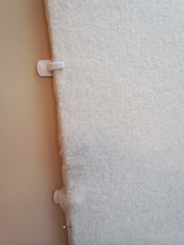 Tip: Keep the color of the flannel or batting to white, cream or ivory. This way you only notice the WIP, not the wall itself.