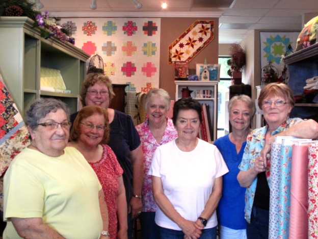 It is always fun to do a surprise stop and check out what is really going on in a quilt shop and Fiddlesticks was hopping with a regular Wednesday sew group. This group is so popular that there is a sub list if a regular can't make it! Everyone brings their own projects, lunch and stitching for the day. On the day I showed up the group was made up of half regulars and half subs and they were all having a great time.